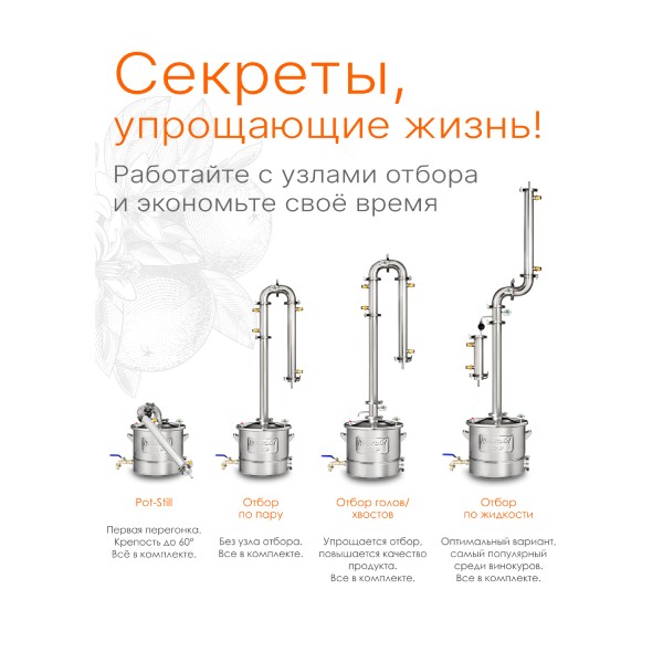 Позволит получить чистый спирт 96.6° даже если вы новичок. Настраивайте интенсивность отбора с точностью до капли удобно и с плавной регулировкой.